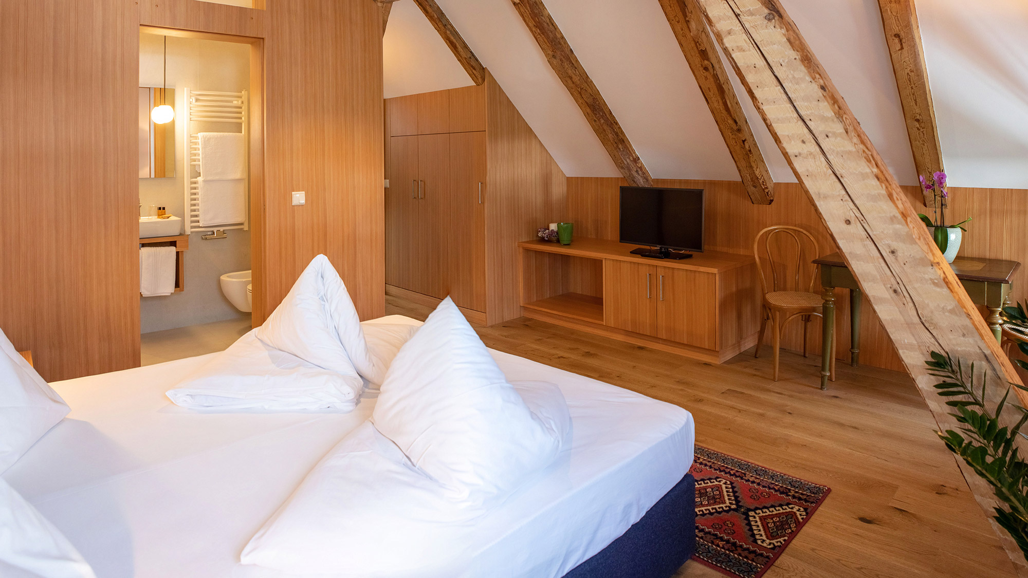 Well furnished bathrooms with WC, bidet, shower and hair dryer